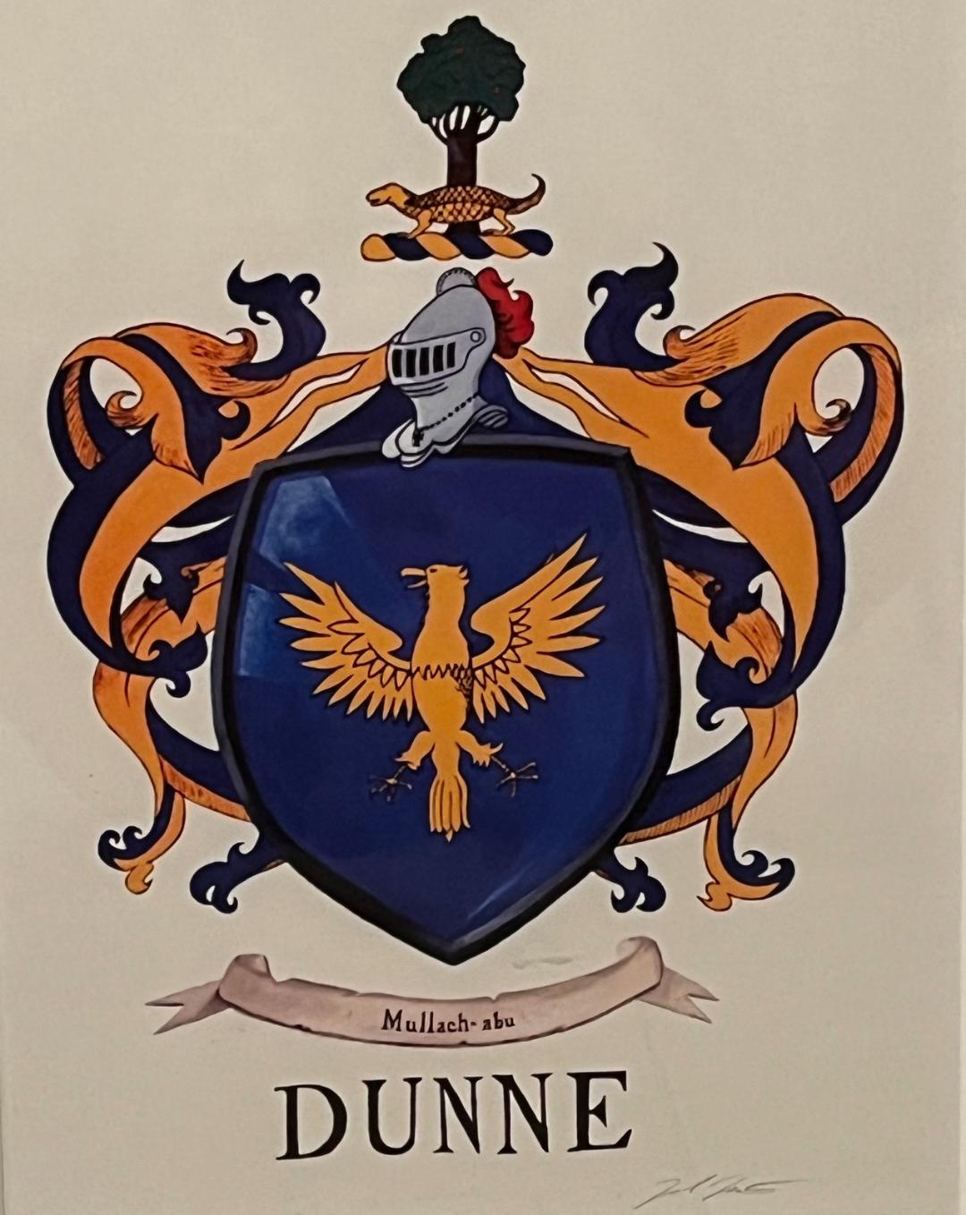 Historically, the Dunne family is associated with the midlands of Ireland, particularly in the ancient kingdom of Leinster. The O’Duinn clan was a powerful and influential family in the region, particularly in County Laois (formerly known as Queen’s County). They were recognized as one of the leading families within the territory of Ui Failge, a Gaelic kingdom that played a central role in the early history of Leinster.